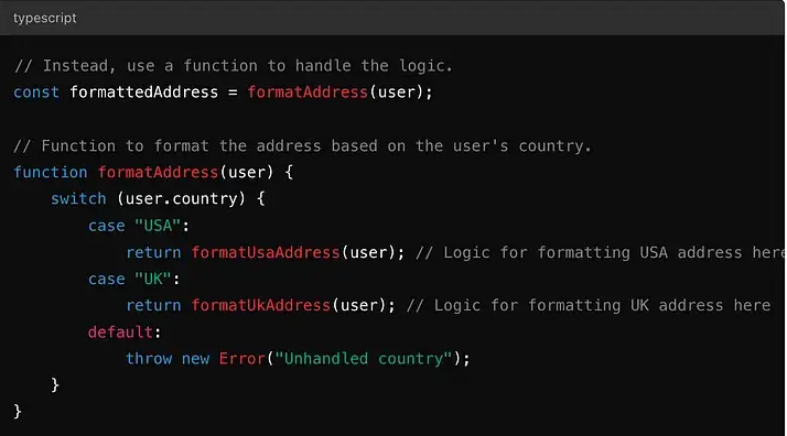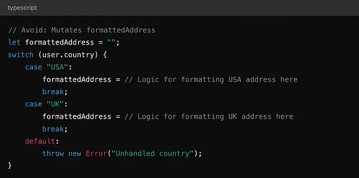 不使用 let 并变异 formattedAddress 变量,你可以通过调用处理格式化的函数来提前返回。这消除了对可变性的需求,使你的代码更清晰。