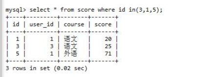 select * from score where id in(3,1,5);