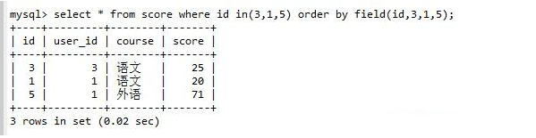 field)select * from score where id in(3,1,5) order by field(id,3,1,5);