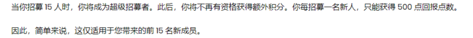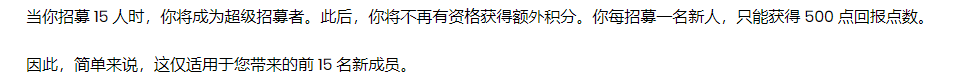 When you recruit 15 people, you will become a super recruiter. After this, you wont qualify for the extra credit offer. You will only earn 500 payback points for each new recruit you bring over.