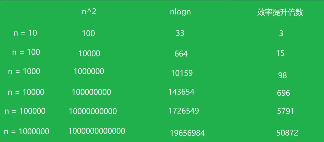 归并排序 时间复杂度属于 O(nlogn) 级别的,相比于 O(n^2) 级别的排序算法,在处理大的数据量时,它的优势非常明显,下面通过原理图和代码演示介绍归并排序是如何实现 O(nlogn) 时间复杂度级别的。