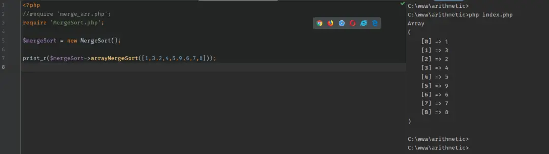 print_r($mergeSort->arrayMergeSort([1,3,2,4,5,9,6,7,8]));
