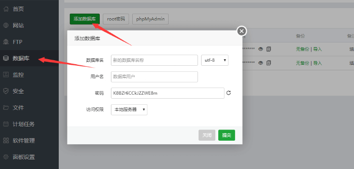 宝塔面板数据库默认不使用root账户创建,而是单独创建新的数据库账号。可以理解为root账户可以管理下面所有的数据库,而创建的单独数据库账号,只有对应数据库的管理权限。