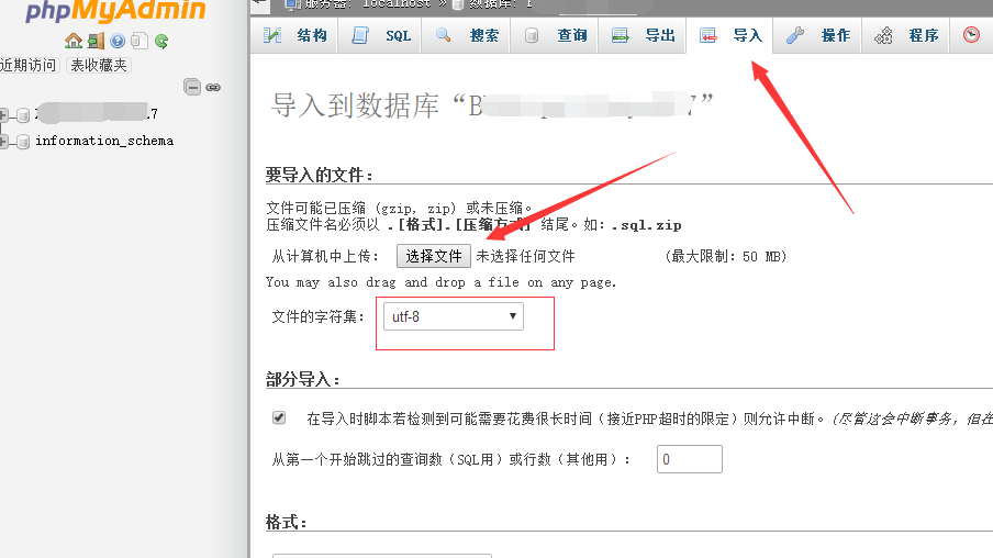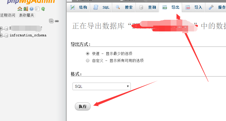 phpmyadmin上方界面的导入和导出就是我们的备份及恢复功能了。