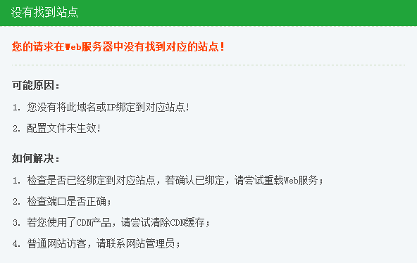 这个提示是说您访问的域名,在这台服务器上没有找到对应的站点,其实就是配置文件没有正确读取才出现的。